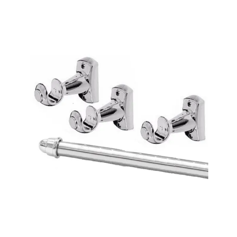 KIT CORTINA MEDIO SIMPLES CROMADO 3M