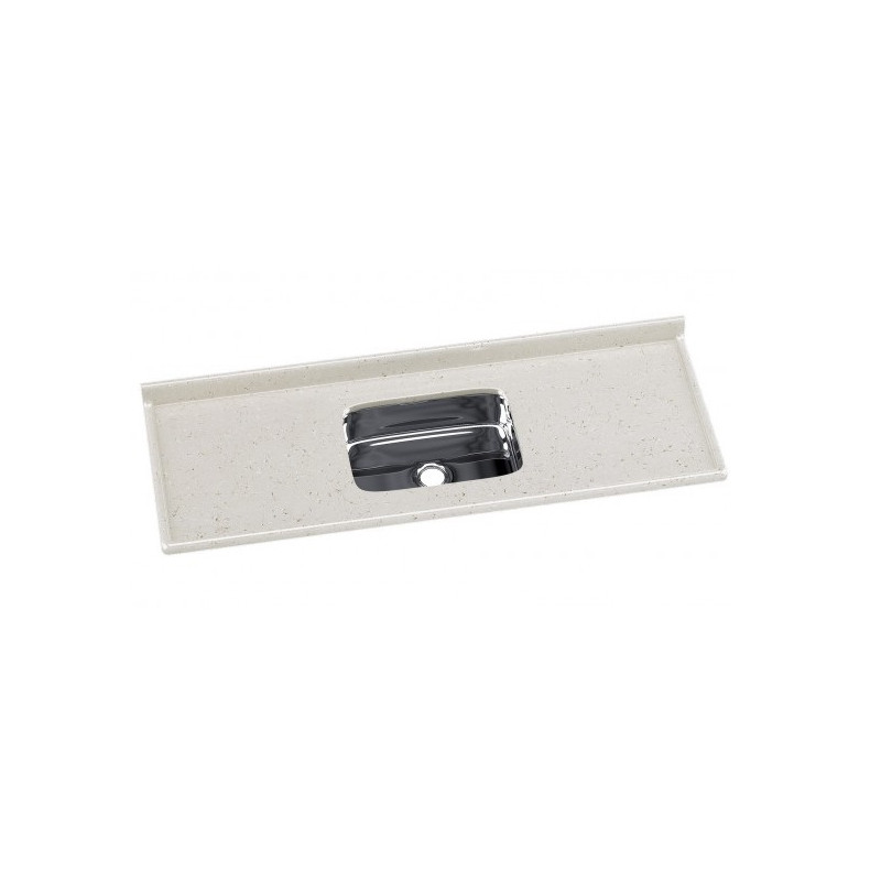 Produto em mármore sintético com espessuras reforçadas, com cobertura granitada de gel coat com brilho e resistência incomparáveis e cuba de aço Inox com 14cm de profundidade.