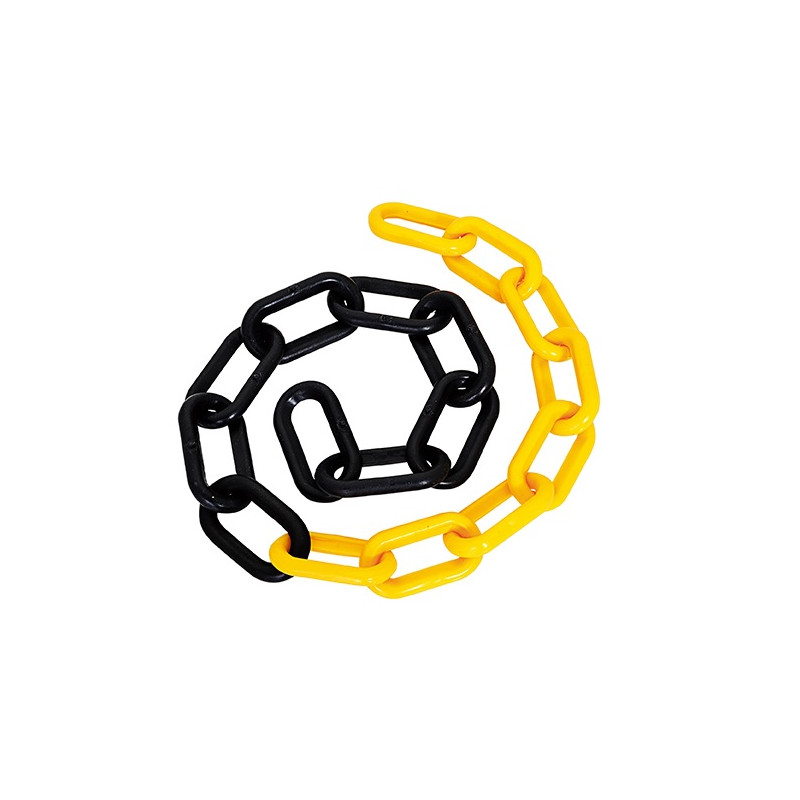 CORRENTE PVC AMARELA/PRETA 09MM 1MCorrente de Polietileno Elo Reto 9mm é vendida a metro. É bastante útil para delimitar o atendimento a clientes, filas, ou até mesmo isolar áreas que estão passando por obras e manutenções que tragam riscos às pessoas que circulam pelo local.