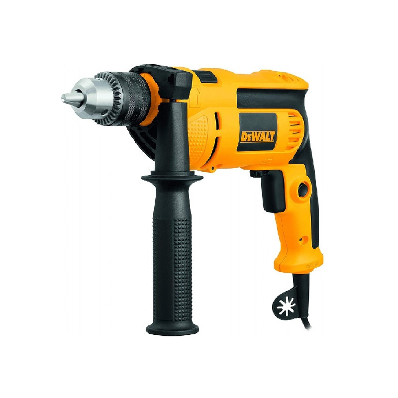 FURADEIRA DEWALT 1/2 502B2 710W 220VA furadeira de impacto DWD502SIB2 Dewalt é um equipamento leve, compacto e ergonômico. Permite realizar fixações contínuas. Possui motor potente, velocidade variável e reversível com trava para uso contínuo. Possui também empunhadura emborrachada que garante maior conforto ao usuário e uma empunhadura lateral 360° para excelente controle e versatilidade. Vem com suporte para chave do mandril no cabo elétrico.