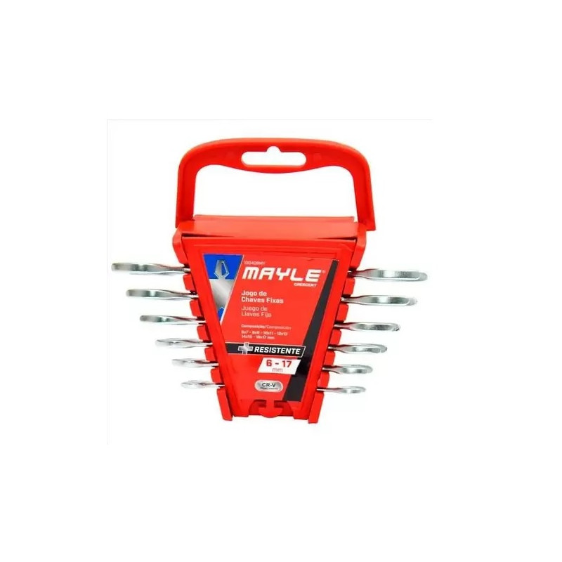 JOGO CHAVE FIXA MAYLE 6 A 17MM 6PCSJogo de Chaves Fixas, também conhecida como Chaves de Boca, 6 a 17mm com 6 peças é utilizada para afrouxar, apertar e regular porcas e parafusos, de feição quadrado ou sextavado.
