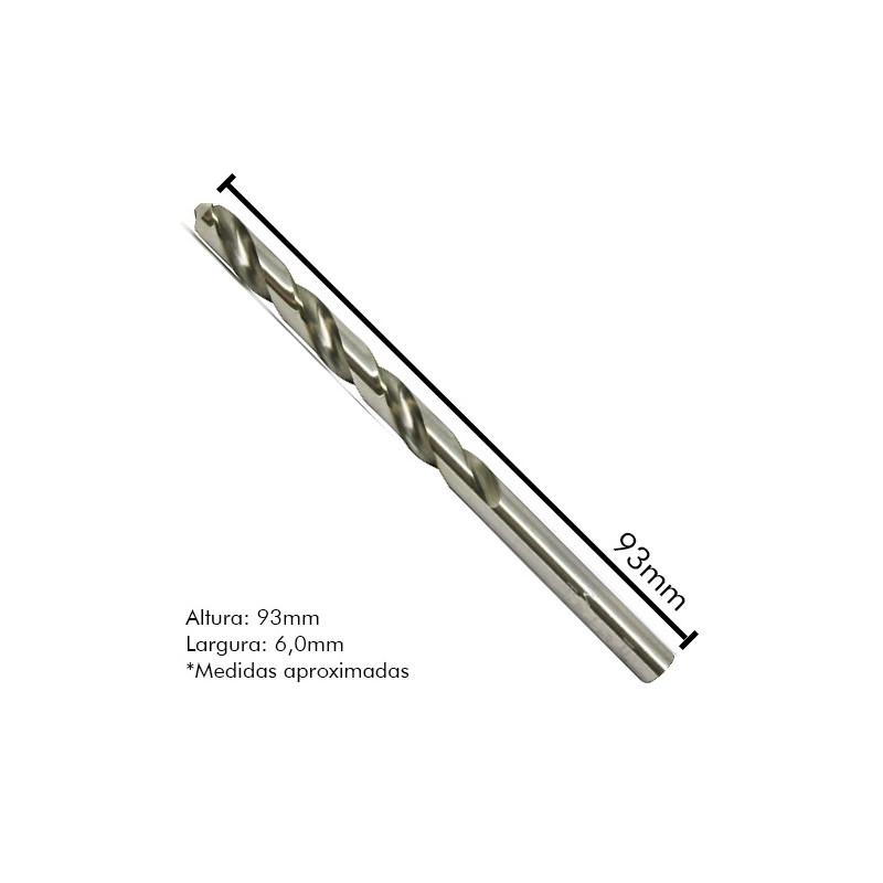 Broca helicoidal produzida em aço rápido possui elevada resistência ao desgaste. Permite a execução de furos com elevada velocidade de penetração em qualquer tipo de metal.