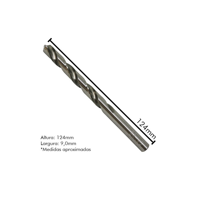 Broca helicoidal produzida em aço rápido possui elevada resistência ao desgaste. Permite a execução de furos com elevada velocidade de penetração em qualquer tipo de metal.