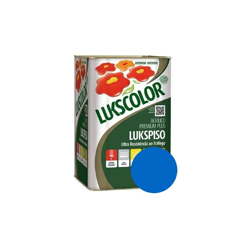 TINTA PISO LUKSCOLOR AZUL 18LCom o LUKSPISO ACRÍLICO PREMIUM PLUS LUKSCOLOR você protege, decora e demarca pisos cimentados, em geral. Indicado para pintura de quadras poliesportivas, calçadas, estacionamentos, garagens, pisos industriais e comerciais, em ambientes externos e internos.