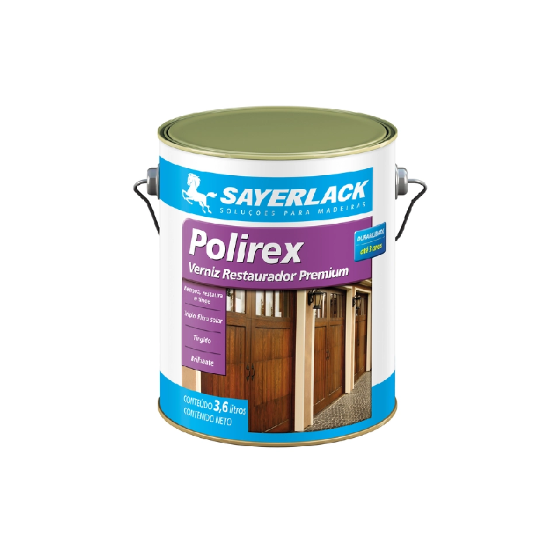 VERNIZ SAYERLACK POLIREX MOGNO 3.6LO verniz da marca Saylerlack é indicado para proteger madeiras em diferentes ambientes. Por ser mais potente, você pode usá-lo em portas de ambientes internos, por exemplo, mas o indicado mesmo é aplicar esse verniz em itens de áreas externas, como janelas e bancos.